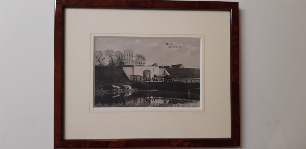 Originele oude ansichtkaart van De Langepoort in Brielle. Ingelijst. Afmeting 23×18 cm. Prijs 30 Euro.