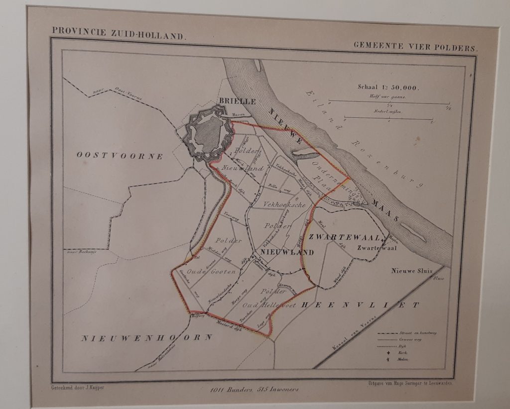 Oude Litho= Steendruk van de gemeente Vierpolders. Komt uit het gemeente atlasje van Zuid- Holland. Door J. Kuyper. Anno 1866. Prijs 80 Euro.