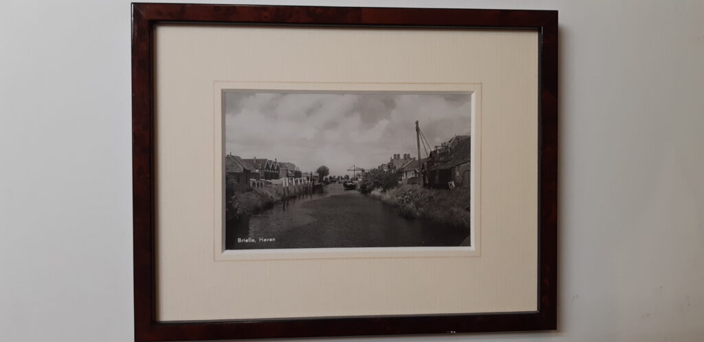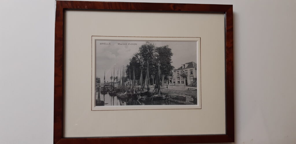 Originele oude ansichtkaart van Haven van Brielle. Ingelijst. Afmeting 23×18 cm. Prijs 30 Euro.