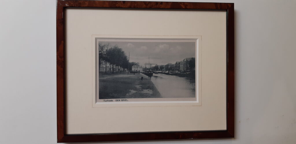 Originele oude ansichtkaart van Turfkade Den Briel (Brielle) . Ingelijst. Afmeting 23×18 cm. Prijs 30 Euro.
