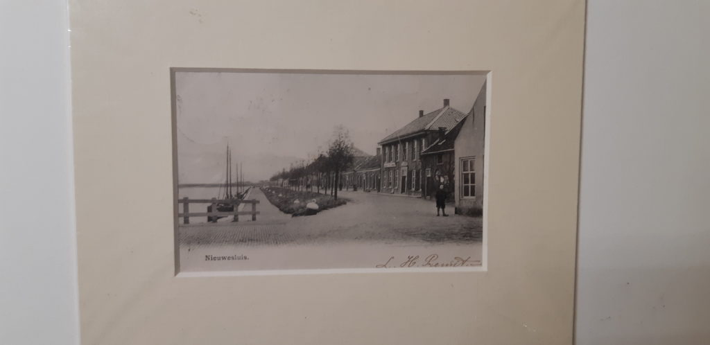 Originele oude ansichtkaart van Havenkade Nieuwesluis. Ingelijst. Afmeting 23×18 cm. Prijs 50 Euro.